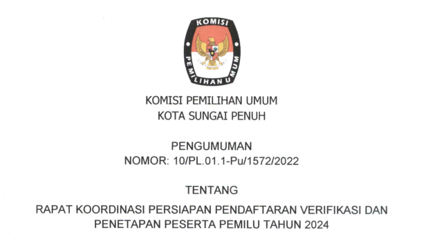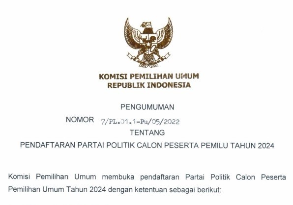 PENGUMUMAN PENDAFTARAN PARTAI POLITIK CALON PESERTA PEMILU TAHUN 2024