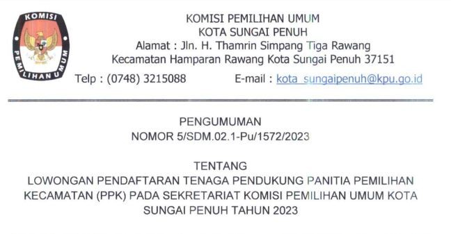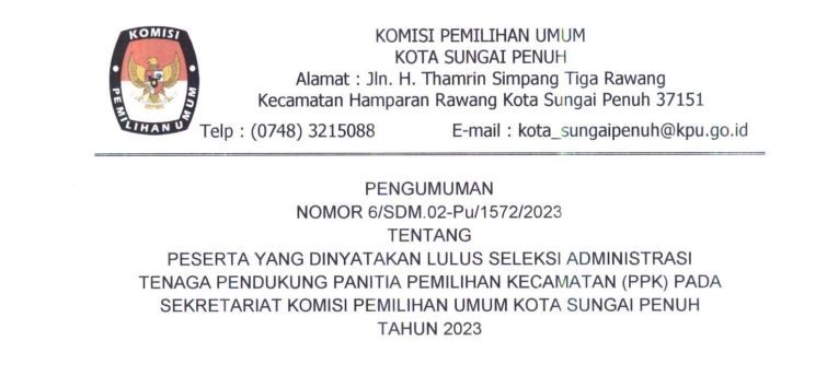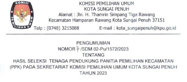 KEPUTUSAN KPU KOTA SUNGAI PENUH NOMOR 120 TAHUN 2023 TENTANG
