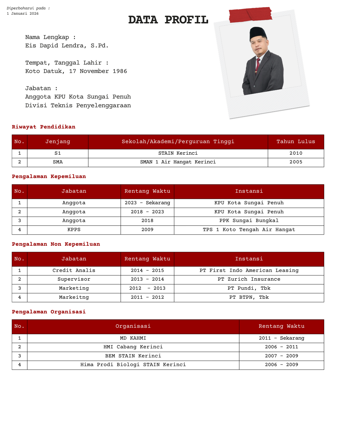 Sejarah Pembentukan KPU Kota Sungai Penuh